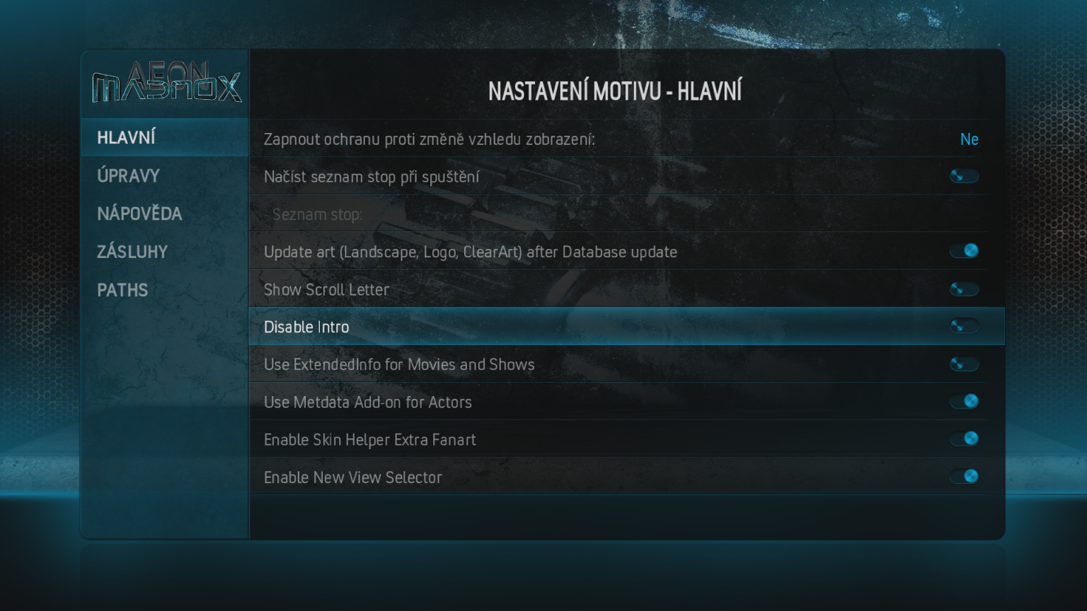 RE: Aeon Madnox RC1 (Jarvis) - pepinomax - 03.3.2016 tak včera nainstalovaný na pc a i na android na pc jede vše v pohodě na androidě to jelo jeden den,tak jsem to všechno nastavil na druhy den to zapnu najede na začátku intro a potom jen černá obrazovka,zkoušel jsem i přeinstalovat pořád to samé :-( RE: Aeon Madnox RC1 (Jarvis) - Rossi D - 03.3.2016 varianta a) - zakaž v nastavení intro varianta b) - odstraň intro Kód: \storage\.kodi\addons\skin.aeon.madnox-master\extras\intro.mp4jsou tam tuším dvě, někam si je zazálohuj a po té obě smaž ... dle mne byla možná reinstalace zbytečná .... RE: Aeon Madnox RC1 (Jarvis) - pepinomax - 03.3.2016 no už jsem to celé smazal :-) ale černá obrazovka byla už i na pc to intro právěže šlo mám to tedy znovu nahodit? a zkusit to???? RE: Aeon Madnox RC1 (Jarvis) - Rossi D - 03.3.2016 Za zkoušku nic nedáš - jen ten čas, ale samozřejmě se mohu mýlit a může to být něčím jiným .... RE: Aeon Madnox RC1 (Jarvis) - pepinomax - 03.3.2016 ok zkusím to :-),ale to intro se mi líbilo RE: Aeon Madnox RC1 (Jarvis) - Rossi D - 03.3.2016 Neboj i na doladění intra dojde a bude vše plně funkční .. RE: Aeon Madnox RC1 (Jarvis) - pepinomax - 03.3.2016 jj,ještě se zeptám svoje intro si tam dát nemohu? zkoušel jsem ho vložit sem a nejelo \storage\.kodi\addons\skin.aeon.madnox-master\extras\intro.mp4 RE: Aeon Madnox RC1 (Jarvis) - Rossi D - 03.3.2016 Tak to jsem opravu nezkoušel