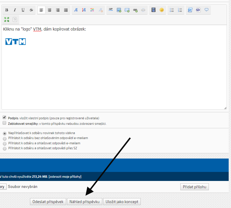 Kliknu na "logo" VTM, dám přes pravé tlačítko "Kopírovat obrázek" a vložím do příspěvku: