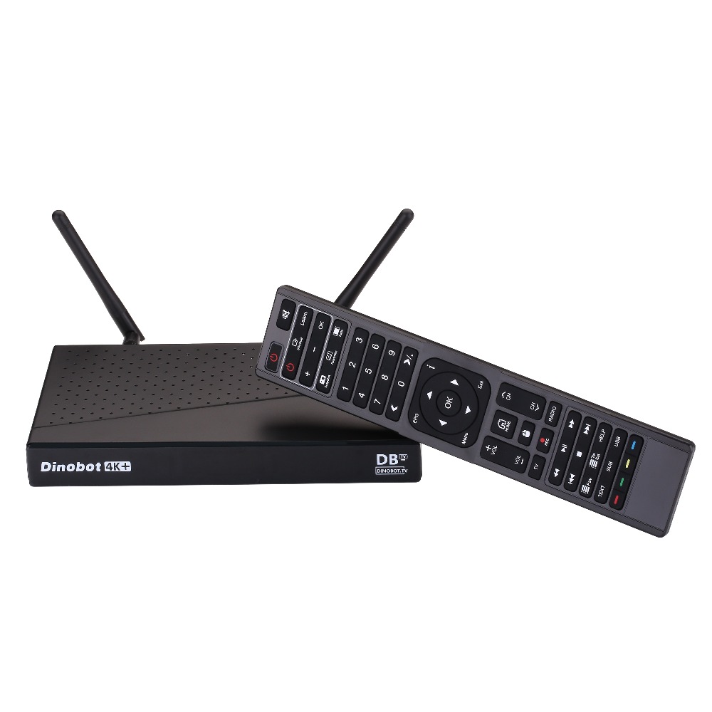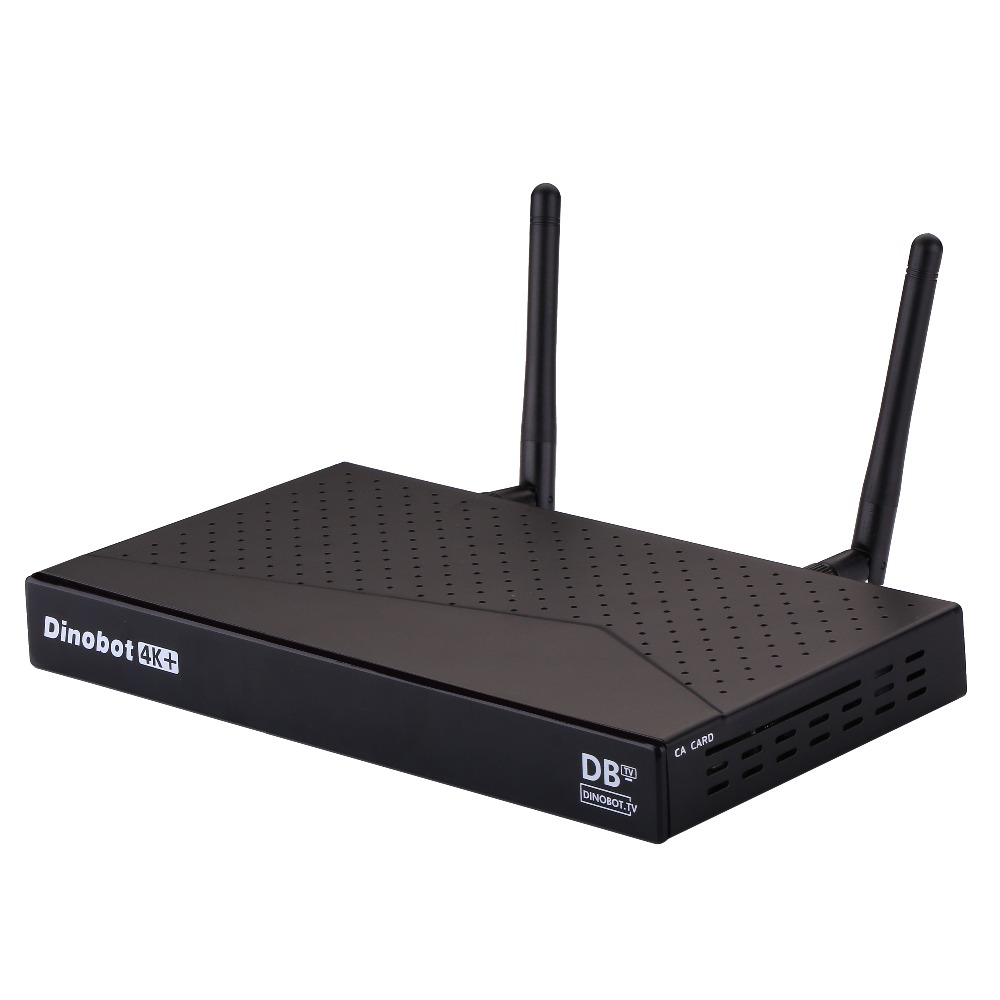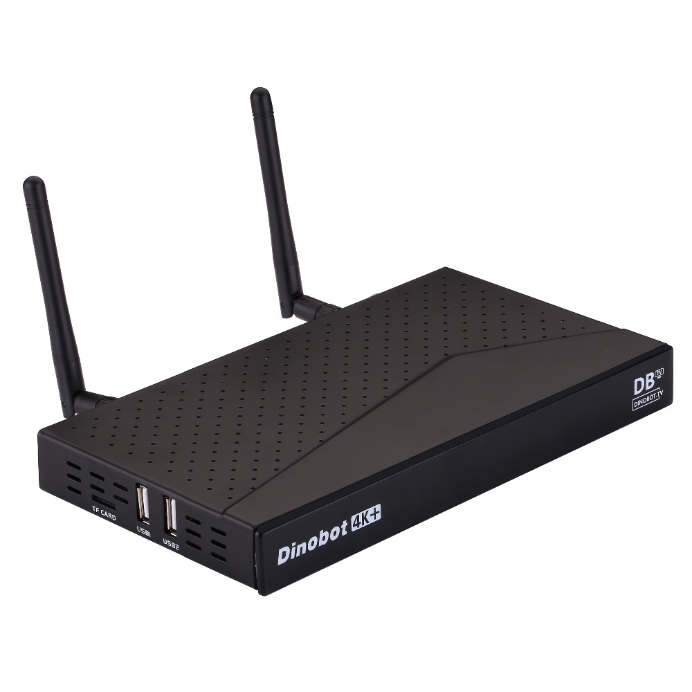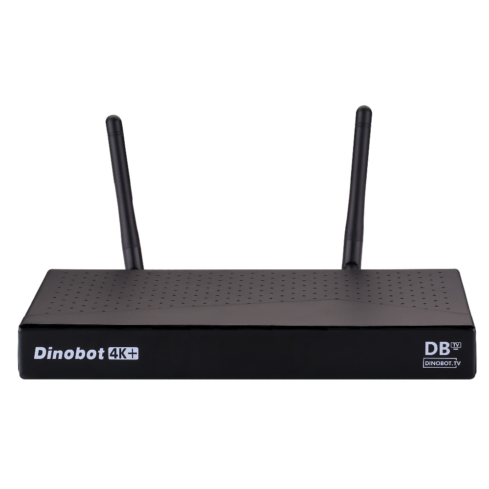 Přijímač Dinobot 4K + je jedním z prvních 4K přijímačů, které kombinují sílu dvou světů (Android a Enigma) z výroby. Tak mají přijímače Dinobot 4K + UHD teoreticky neomezený přístup k mnoha multimediálním a zábavním aplikacím a funkcím, jako je YouTube, Kodi, prohlížeče, aplikace pro Android a konzistentnější standardy, jako je EPG, timeshift a PVR podpora, teletext  Dinobot má 4K pro brilantní barvy a ostrý obraz, a potěší Vás Cortex A53 core procesorem 15.000 DMIPS ARM quad, 8 GB paměti eMMC Flash až 2 GB Ram dostatečným výkonem.