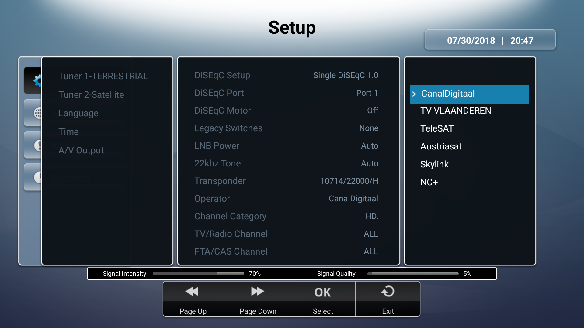 - Combo tuner (DVB-S2 / S, DVB-T2 / T / C)