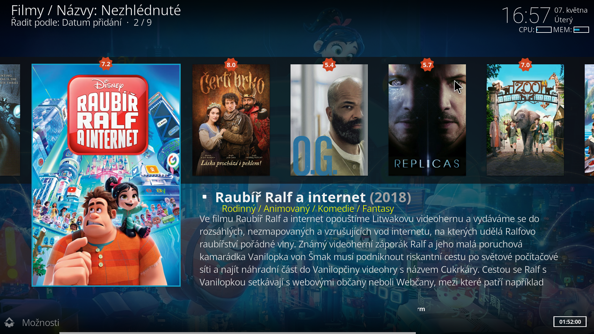 Jo a ještě něco. Byl jsem k tvému požadavku ze začátku skeptický, ale čím dál více se mi líbí tak, že si to takhle nechám i na svém Kodi. I ostatní členové domácnosti to přivítali jako dobrý nápad.