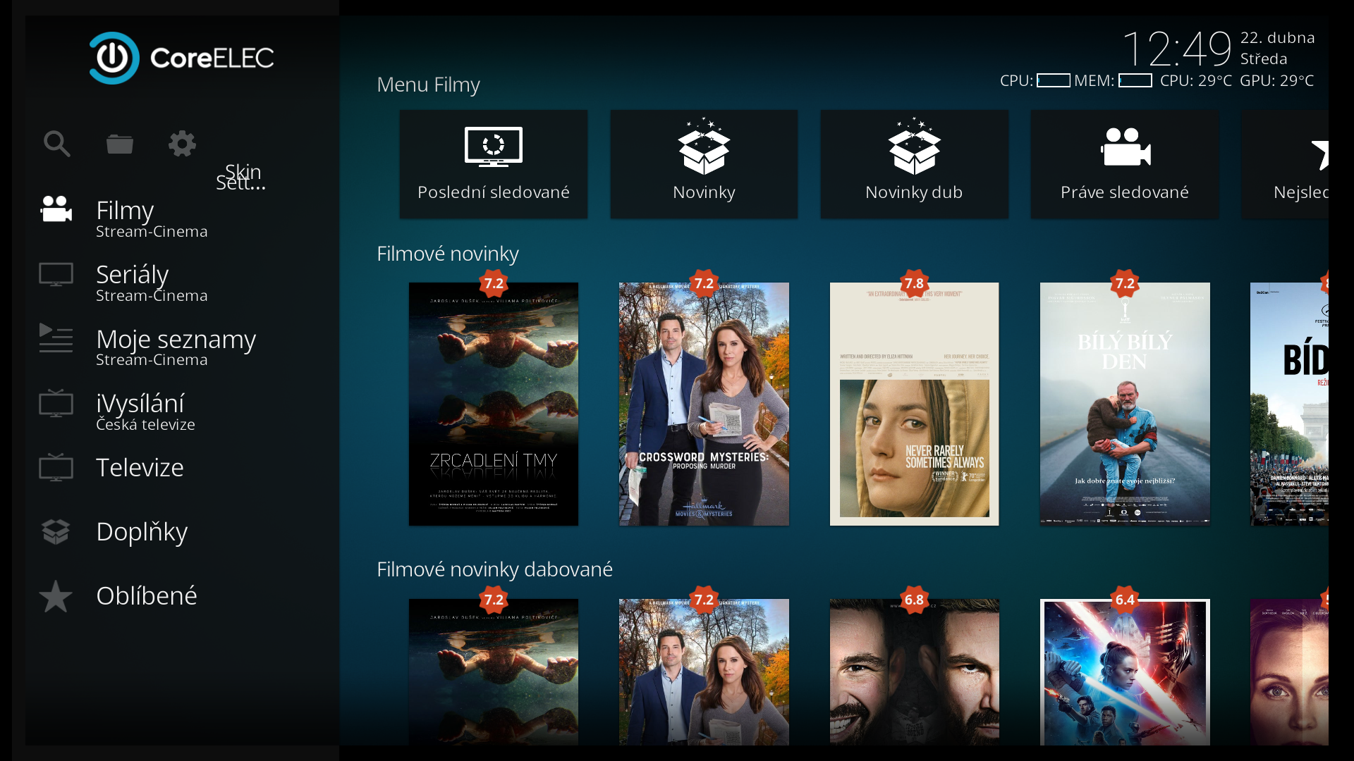 • podpora dalších nových funkcí addon Stream-Cinema i dalších addon, pro které jsou ve skinu funkce (Netflix, HBO GO, Spotify, Radia, Skylink, ...)