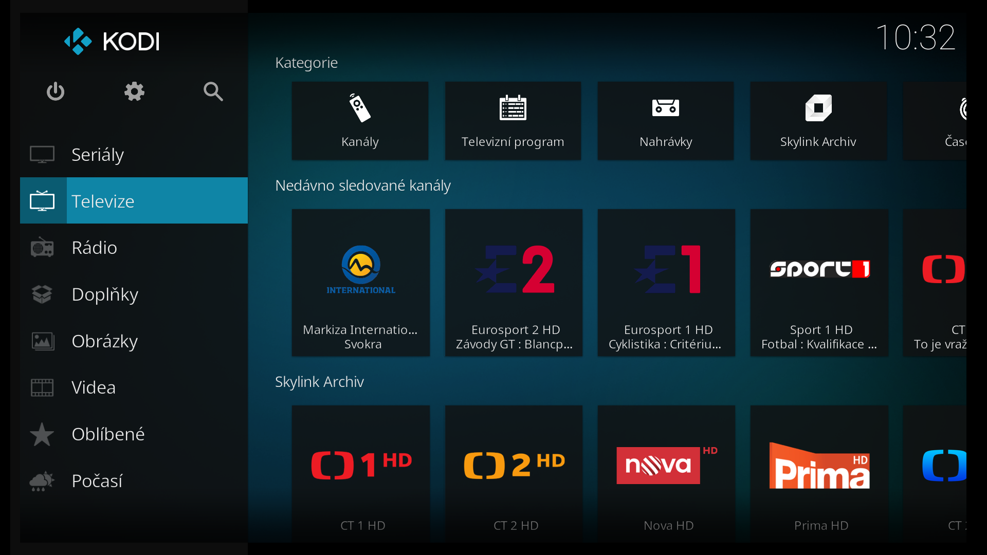 Výsledek pak vypadá takto, po volbě Skylink Archiv se zobrazí archiv příslušného kanálu.