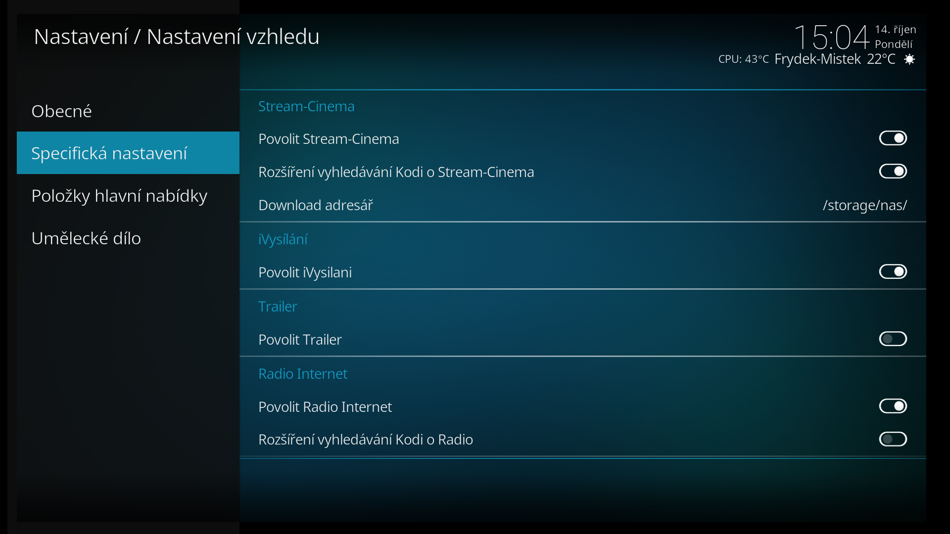 - Že jim skin nabízí i jiné funkce - například stavový řádek s celou řadou doplňkových informací, připravovaná funkce filtru Stream-Cinema